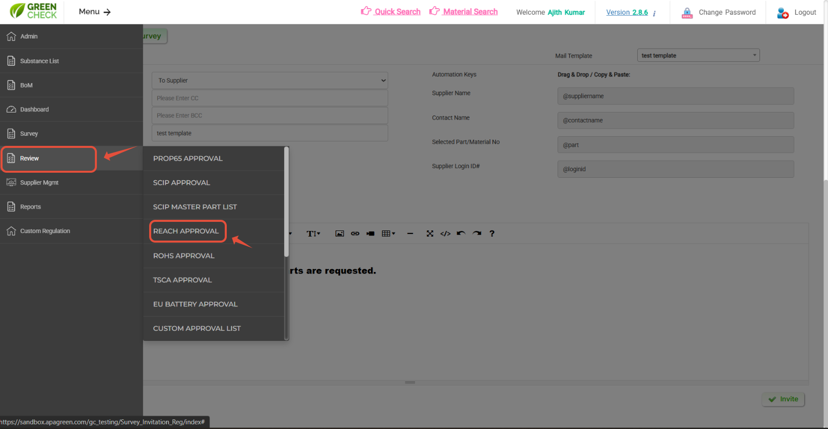 - After logging in, use the menus: Menu--> Review-->Select respective regulations to Approve