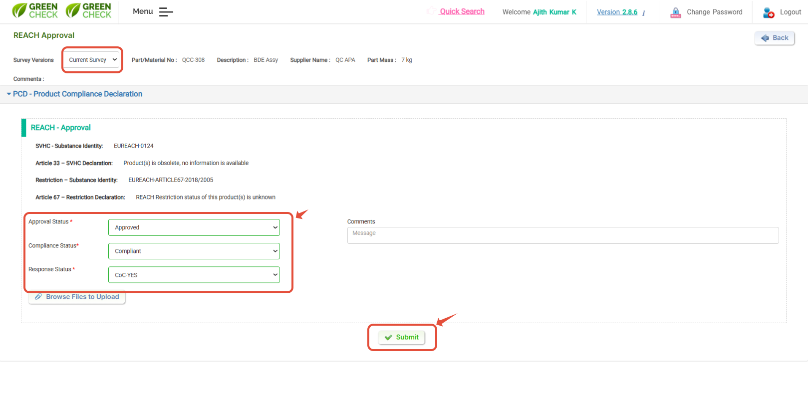 - Hit on "Part/ Material No:" to view the supplier response, and based on supplier data, you can "Approve/ Reject"