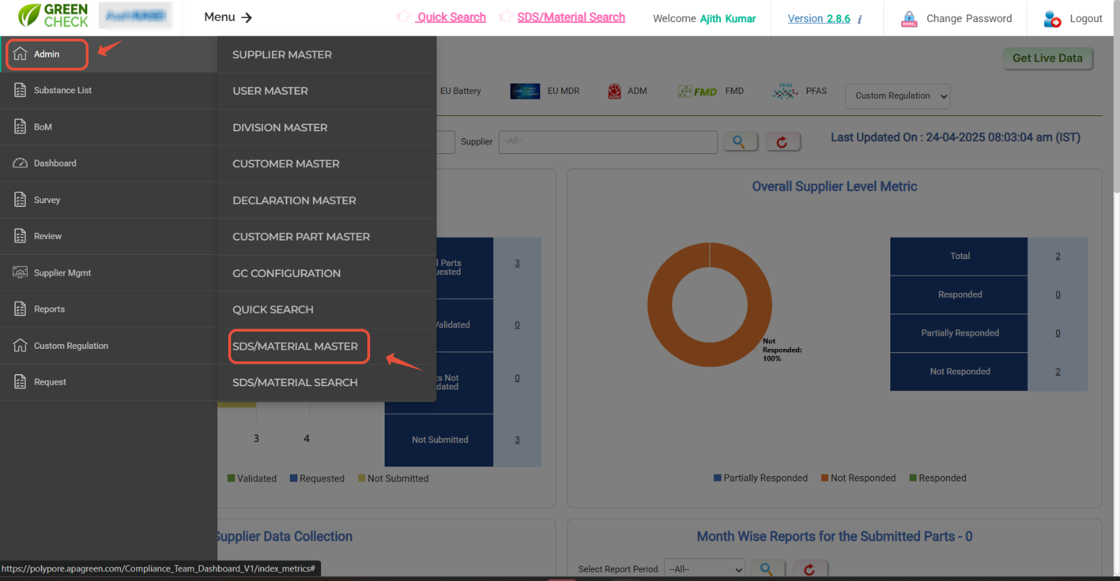 - Log in to GreenCheck using the URL shared by the Admin